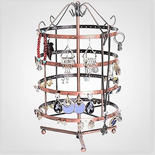 Summarytip 4 tiers Copper Color Rotating Jewelry Tower 92 pairs Earring Organizer Earrings Bracelets Necklaces Holding Stand Earring Holder Earring Display Tree