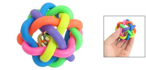 -. Title : 6.5cm Diameter Cord Woven Jingle Bell Pet Dog Play Colorful Rubber Ball Toy