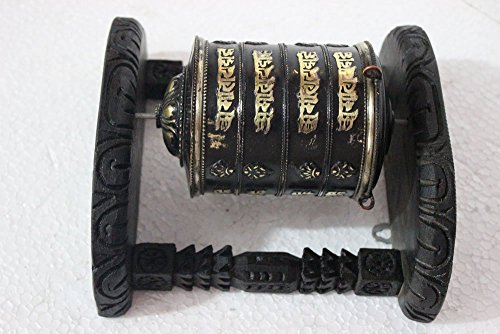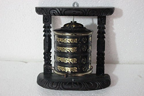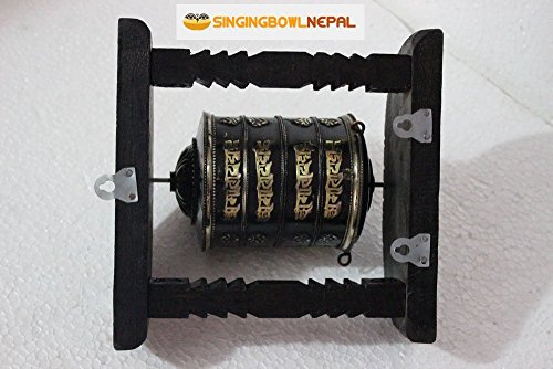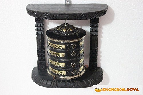 Tibetan Om Mani Padme Hum Hand Held Wall Hanging Prayer Wheel - Brass and Wood Hand Crafted in Nepal