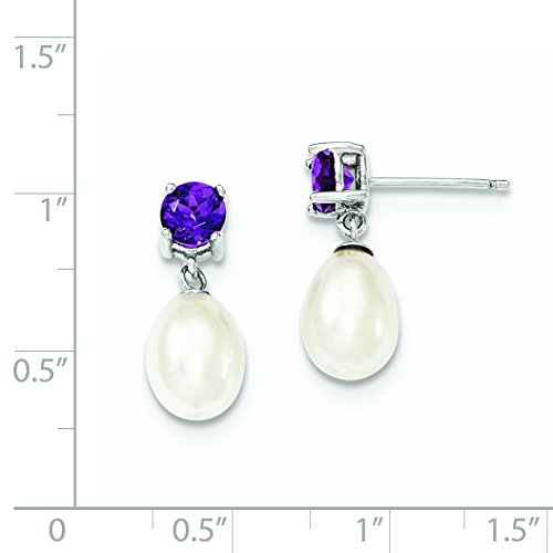 ICECARATS DESIGNER JEWELRY 925 STERLING SILVER PURPLE AMETHYST 8MM FRESHWATER CULTURED PEARL TEARDROP POST STUD BALL BUTTON STUD EARRINGS