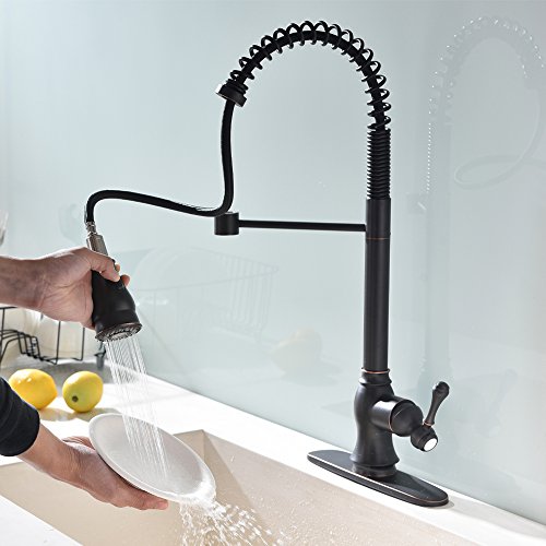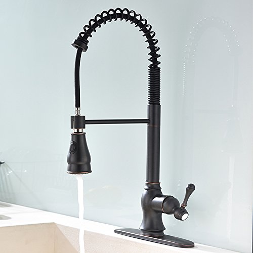 Shaco Antique Single Handle Oil Rubbed Bronze Pull Down Sprayer Kitchen Sink Faucets, Kitchen Faucets Bronze With Deck Plate