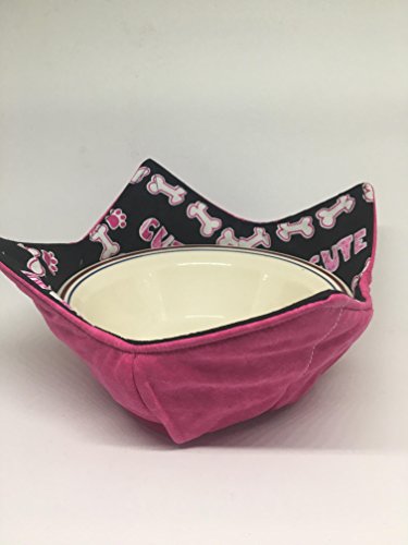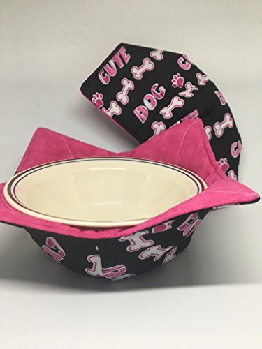 Product Description If you've ever burnt your fingers on a bowl out of the microwave or fumbled with oven/ microwave mitts this cozy is for you. It's Reversible cotton print in a very sweet Dog paw print that reverses to bright pink. It has cool doggie and dog bones in cute dog lovers print. The cotton batting and cotton fabric microwave safe for up to 3minutes - Simply put the bowl in the cozy-pop in the microwave, cook up to 3minutes and then lift out using the corners. Take the bowl from Microwave to table or lap and protects from the hot bottom of the bowl. Makes a great treat any Dog lover, puppy lover. ** The batting is Pellon Microwave safe but caution is still needed. Do not use past 3minutes in the microwave, not for use in a conventional oven, If food spills onto the cozy, make sure to wash it. Built up food overtime can catch fire. **Never leave unattended ** 0