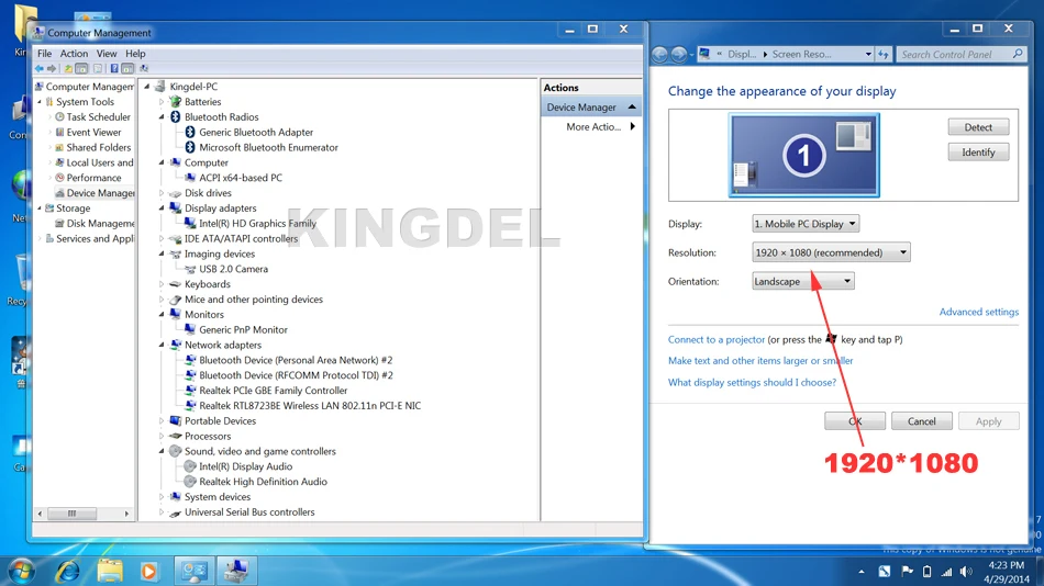 インテルi5 5th大将デュアルコア2.2 ghzターボブースト2.7 ghz 3メートルキャッシュkingdelブランド、1920*1080、無線lan、インテルhdグラフィックス5500、hdmi、usb 3.0、ブルートゥース、8電池