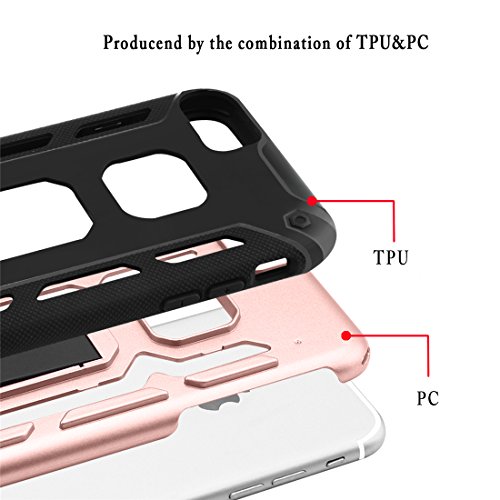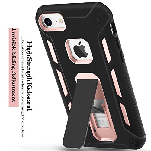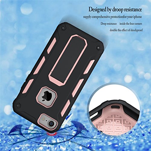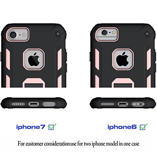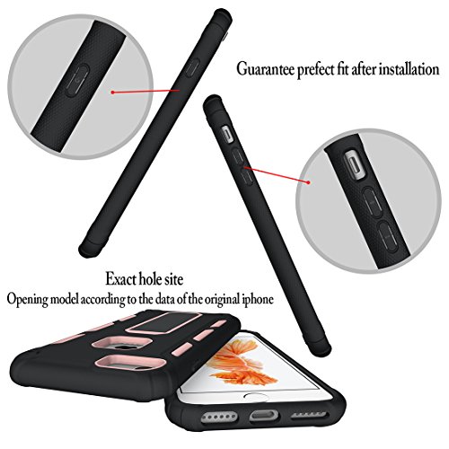 iPhone 7 Case, iPhone 6s Case, iPhone 6 Case, MaiKuo Dual Layer Heavy Duty Rugged Shock-Absorption Non-slip Bumper Kickstand + Tempered Glass Screen Protector Cover Skin For Apple 4.7 Inch_ Rose Gold