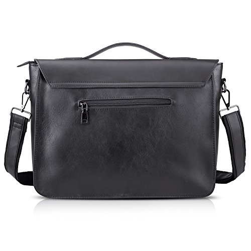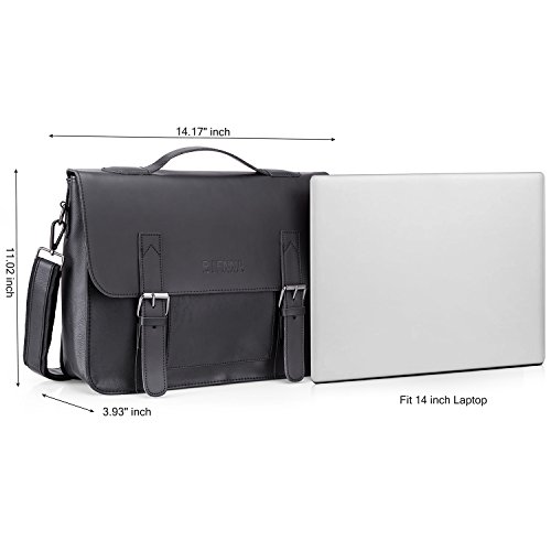 -. Feature : Briefcase or Cross Body Messenger Bag:there's an adjustable shoulder strap that you can carry this as a crossbody bag.Instead, the shoulder strap can be removed, you can carry this as a briefcase with a leather handle / COMPARTMENT:1 main zipper top bag(with 4 inside open pockets),2 exterior front pockets(1 zippered+1 open);1 back zippered pocket; Use the magnetic button to open the bag / MAIN COMPARTMENTS:Large,takes all kinds of EDC, like iPad,tablet,computer,cellphone,kindle,wallet,books,umbrella,camera,etc.Also fit for 14" Laptop / MULTI-PURPOSE:Idea for travel,shopping,school and work everday use.It is light but durable.High quality and durable PU leather,a great gift for men, women, teen, girls, boys, college student,boyfriend / SIZE: 14.17"(L)*3.93"(W)*11.02"(H); Shoulder strap: 25- 47.2 inches(when fully extended);Weight: 2.34 lb