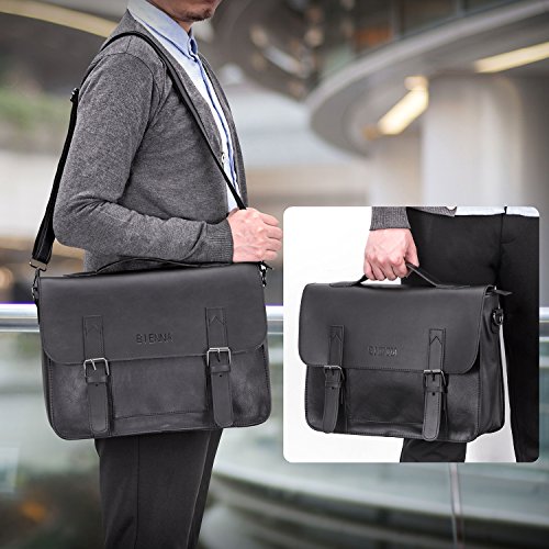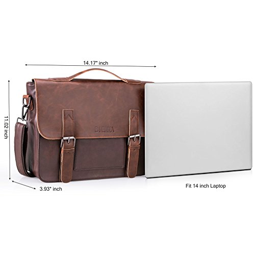-. Title : BIENNA Messenger Bag, Vintage Briefcase PU Leather Satchel Laptop Over Shoulder Crossbody Sling Bag Handbag Side Bags with Strap for Men Women Business Office Travel School 14"