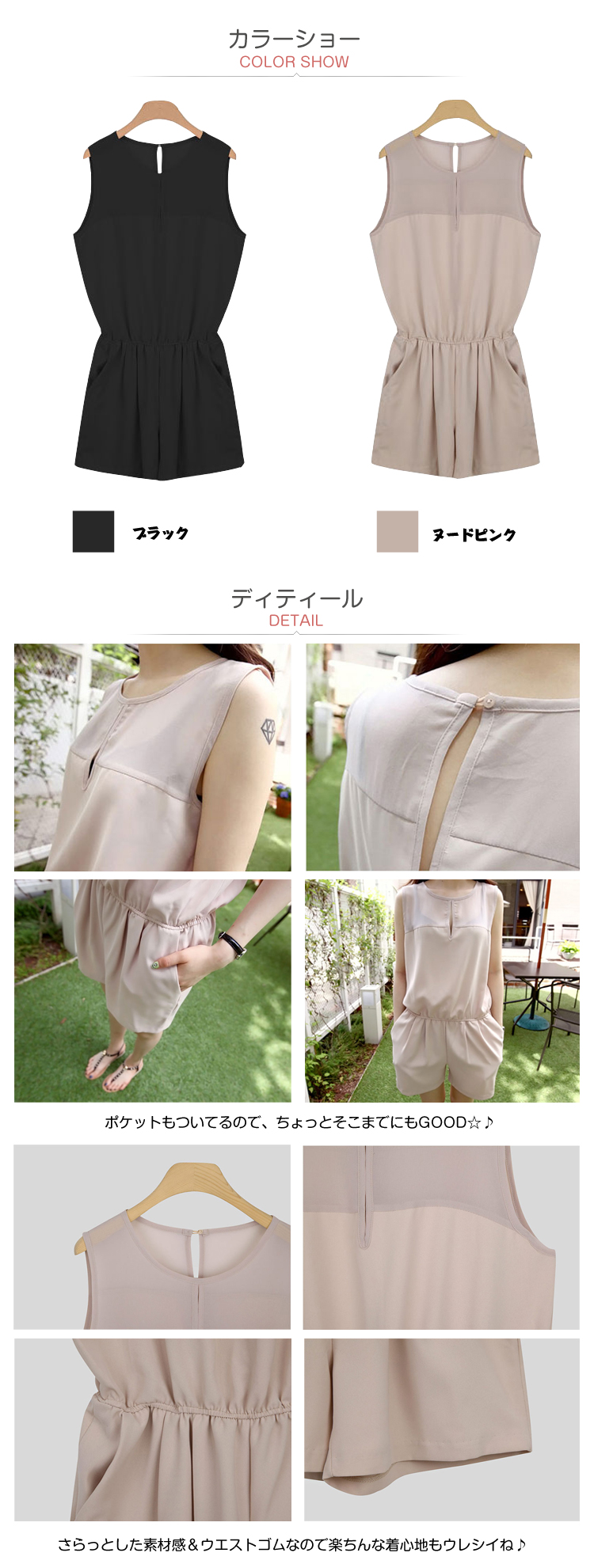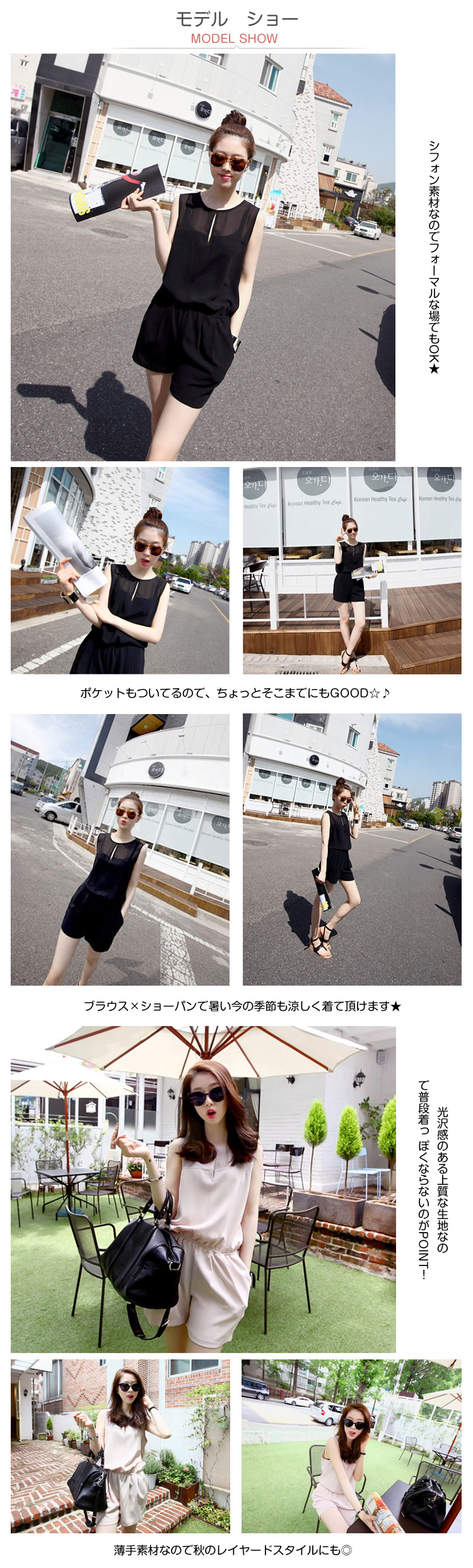 | 1枚でさらっと着られるシンプルオールインワンショートパンツ?オールインワンなら背中のチラ見せもcuteに決まる?シフォン素材なのでフォーマルな場でもOK★ポケットもついてるので、ちょっとそこまでにもGOOD☆?ブラウス×ショーパンで暑い今の季節も涼しく着て頂けます★光沢感のある上質な生地なので普段着っ ぽくならないのがPOINT!さらっとした素材感&ウエストゴムなので楽ちんな着心地もウレシイね?薄手素材なので秋のレイヤードスタイルにも◎ヒールを合わせて大人っぽく着こなして頂くのがオススメです☆ | |