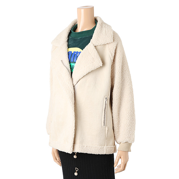 따뜻하과 가벼운 사랑스런 컬러감의 무스탕 코트입니다.