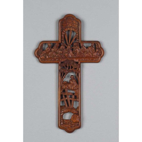Lord's Last Supper Woodgrain Carved 12 Inch Resin Wall Cross