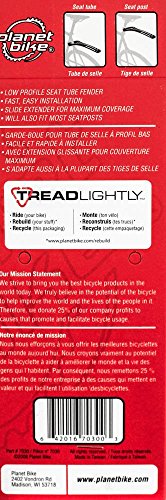 -. Binding : Sports -. Brand : Planet Bike -. Color : Black -. EAN : 0642016703003 -. Feature : Design meets function with this unique quick-attach rear fender / Fender attaches to the seat tube of most bikes and can attach to the seatpost of any bike / Length is adjustable with simple knob / Durable, all-weather polymer / Fits most bikes even Road and BMX -. Label : Planet Bike -. Manufacturer : Planet Bike -. Model : FE3055 -. MPN : 7030 -. PackageQuantity : 1 -. PartNumber : 7030 -. ProductGroup : Sports -. ProductTypeName : OUTDOOR_RECREATION_PRODUCT -. Publisher : Planet Bike -. ReleaseDate : 2008-09-17 -. Studio : Planet Bike -. Title : Planet Bike Spoiler Rear Bicycle Fender -. UPC : 642016703003