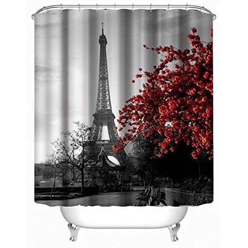 Caroyla 72'X72'Eiffel Tower Shower Curtain Waterproof Mildew Bathroom Decor with Hook (32)