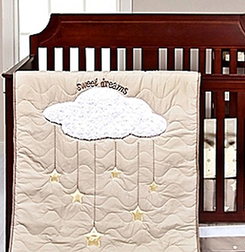 -. Feature : Your little one will have the sweetest dreams nestled in the Trend Lab Sweet Dreams Crib Bedding. In moonbeam grey, star yellow and cloud white, it features soft fabrics and an embroidered "Sweet dreams" to send your baby off to dreamland. / The Sweet Dreams Bedding Collection from Trend Lab features light yellow stars and a fluffy white velour cloud on moonbeam grey, for a cute and dreamy nursery theme / Quilt with "Sweet dreams" embroidery, plus yellow satin star and white velour cloud appliques on moonbeam grey cotton, 35" W x 45" L / Fitted crib sheet in 100% cotton with grey star P.R.Int on light yellow , 28" W x 52" L with 8" D pockets and elastic all around for a snug fit / Box pleat crib skirt in grey with yellow star appliques and white accent piece, 28" W x 52" L with a 15" drop