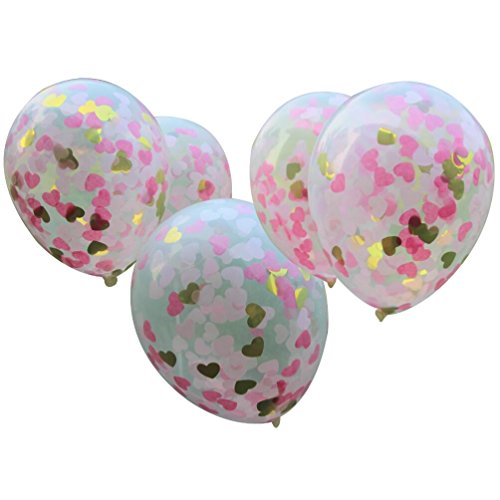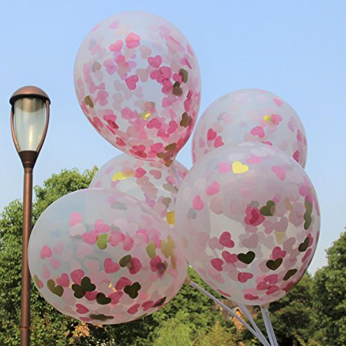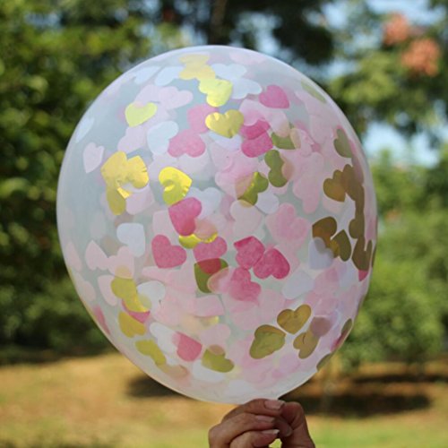 -. Feature : Pinks gold heart confetti balloons are great for Valentine's Day,festival, a wedding,Gender Reveal, bridal shower, baby shower, engagement party, birthday party or any special event. Take your party decor to a higher level- Float these whimsical confetti filled balloons! / "List for 5 pieces 10"" clear latex balloons filled with metallic gold blush pink heart confetti " / Balloons ship deflated, take them to your local party store to be inflated. or purchase a small helium tank and fill them yourself. or,just use mouth.Fill with helium or plain air (small helium tanks are widely available online and are easy to use and very cost efficient). / Size: 10 inch balloon and 1 inch wide heart confetti / Material: Latex and tissue paper