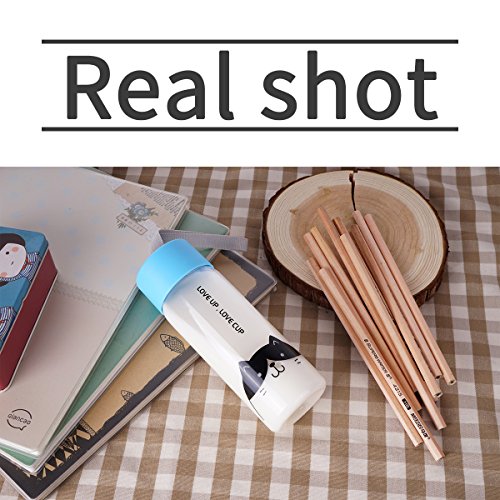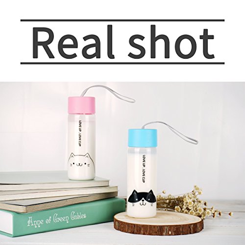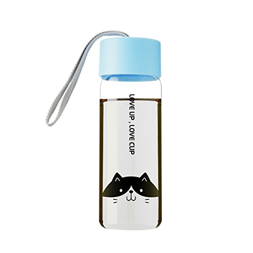 UPSTYLE Eco-friendly Healthy Plastic Mug Transparent Coffee Travel Mug Sports Water Bottle Water Cup with Colorful Lid for Tea, Coffee, Milk or Juice Size 300 ml, Blue Cat