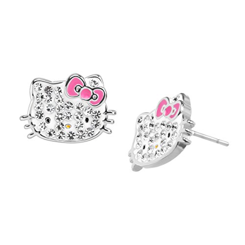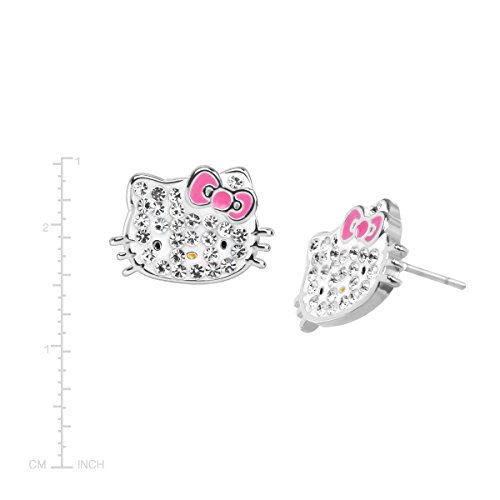 These shining Hello Kitty stud earrings are sure to become your new favorite! Round-cut white crystals decorate the face of these stud earrings, crafted in sterling silver-plated brass. Pieces measure 3/8 by 1/2 inches.Feature
