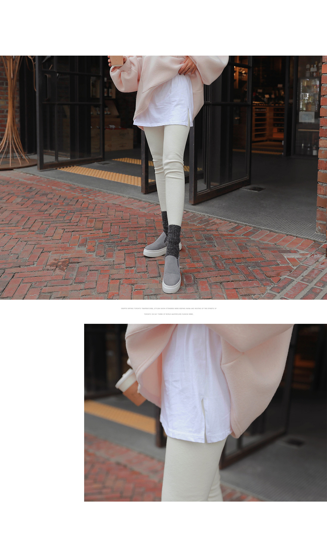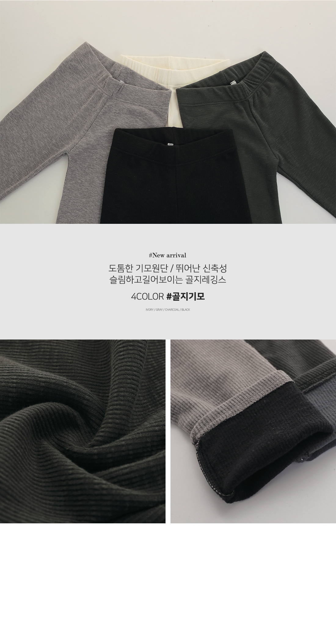 높게 올라오는 하이웨이스트 디자인과 잔잔한 세로 골지로