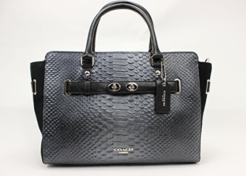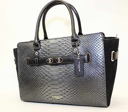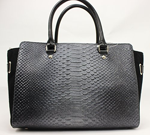 -. Feature : Snake-embossed leather, Color: SILVER/BLACK/GUNMETAL / Inside zip, cell phone and multifunction pockets, Zip-top closure, fabric lining / Handles with 4 1/2" drop, Strap with 20" drop for shoulder or crossbody wear / 15 (L) x 9 (H) x 5 1/2" (W) / MSRP $750.00