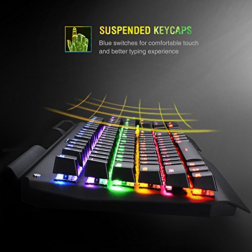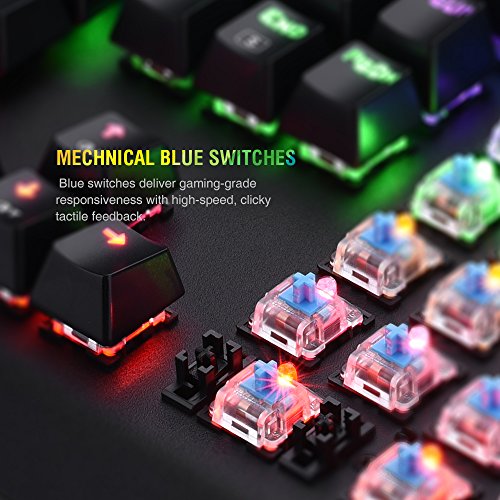 【MECHANICAL BLUE SWITCHES】: Mechanical blue keys with high-speed 'clicky' tactile feedback help you enter commands more rapidly, so you can stay on top of your games.