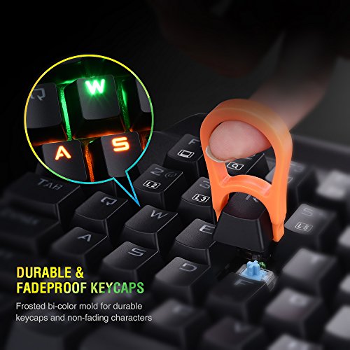 【DURABLE & FADEPROOF KEYCAPS】: Adopts unique bi-color molding technology and this gaming keyboard is designed for durable keycaps and non-fading characters.