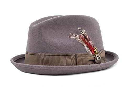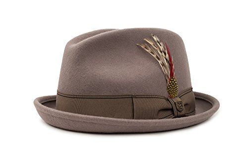 Product DescriptionThe gain is a short-brim felt fedora with a grosgrain band, feather, custom lining, and a 13-mm. Metal Brixton ribbed shield.0