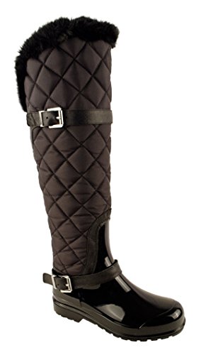 Shield yourself from the elements with sacrificing style with the Classic Michael Kors Womens Quilted Fulton Harness Rainboots! These boots feature: durable manmade sole that keeps you dry, while the quilted nylon and faux fur trim provides a polish chic look, embellished Michael Kors signature charm, and round closed toe. Michael Kors is a globally awarded designer who produces luxury items that carry unfaltering designs which are sure to withhold the tests of time. These products are built to last and stay up with latest fashions and styles, leaving you with the most desired looks.Feature