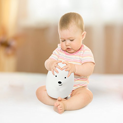 Humanized Design: Using BPA-free washable silicone and ABS base as material, the squeezable baby night light with lovely bear/rabbit face gives your kids a pleasantly soft feel. No sharp edge, no harsh light, great for baby, toddler, etc.