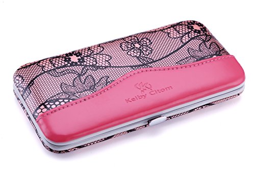 Keiby Citom Professional Stainless Steel Nail Clipper Set Nail Tools Manicure & Pedicure Set of 12pcs - Travel & Grooming Kit with Luxurious Case (Pink)
