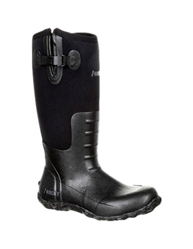 Studio : Rocky Publisher : Rocky Binding : Apparel Product Description Mens Rocky Outdoor Footwear: Classic style! These men's Rubber waterproof pull on boots from Rocky have a removable PU cushion footbed; 16" shaft height; and a 19" calf circumference. The shaft height and circumference may vary by size; they have a round toe; and the vulcanized rubber outsole with self cleaning tread design maintains traction and reduce weight by shedding mud with every step. RKS0351 0