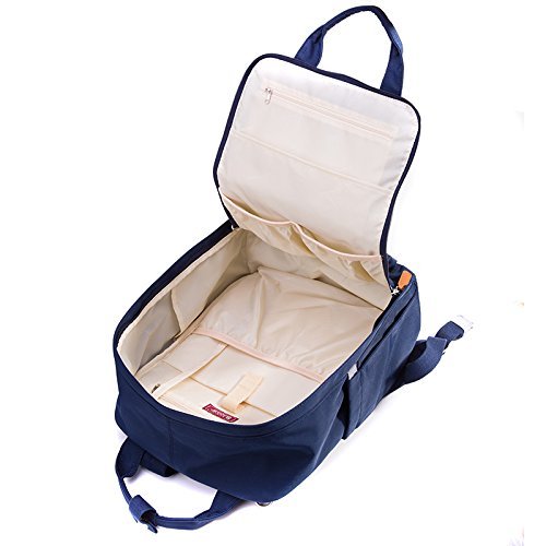 Studio : Sunveno Publisher : Sunveno Binding : Baby Product Product Description Inner material: polyester; outer material: waterproof nylon. Wide open design, you can open the main zip fully and clearly see everything in your bag. Front pocket with elastic bands to to hold 2 bottles (recommended bottle sizes for bottle holders: 3" or less in diameter at bottle's widest point. 7" or less in height); 2 side pockets, one with slit for easy access to wipes of tissues; Concealed back zip pocket. Inside it has one laptop holder, 2 bottle holders, 2 zipper pockets, 2 small open pocket and 1 large open pocket and 1 changing pad(22.05" L x 11.81"W) 0