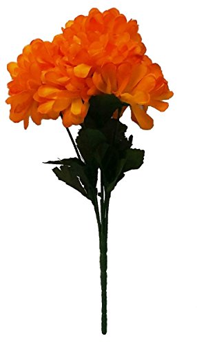 [Product Information]- One Artificial Orange Mum Bush, 7 stem