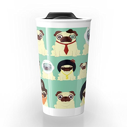 -. Feature : Take your coffee to go with a personalized ceramic travel mug. / Double-walled with a press-in suction lid, the two-piece (12oz) design ensures long lasting temperatures while minimizing the risk of spillage from kitchen to car to office. / Standing at just over 6" tall with wrap around artwork, safely sip hot or cold beverages from this one of a kind mug. / An independent artist profits from every purchase with Society6.