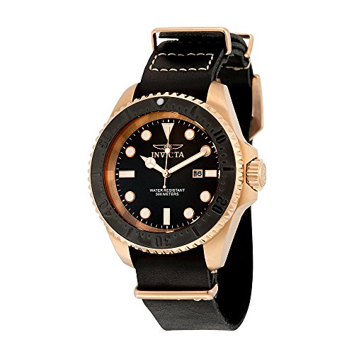 -. Binding : Watch -. Brand : Invicta -. Department : mens -. EAN : 0886678217885 -. Feature : Date window at 3:00 / Black dial with rose gold tone and white hands and hour markers; luminous; unidirectional 18k rose gold ion-plated stainless steel bezel with black top ring; screw-down crown; flame fusion crystal; 18k rose gold ion-plated stainless steel case; black wraparound leather strap / Japanese-quartz movement / Case diameter: 51mm / Water resistant to 1640 feet -. Label : Invicta -. Manufacturer : Invicta -. Model : 17582 -. MPN : 17582 -. PackageQuantity : 1 -. PartNumber : 17582 -. ProductGroup : Watch -. ProductTypeName : WATCH -. Publisher : Invicta -. Studio : Invicta -. Title : Invicta Men's 17582 Pro Diver Analog Display Japanese Quartz Black Watch -. UPC : 886678217885