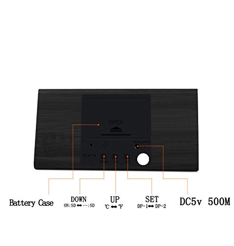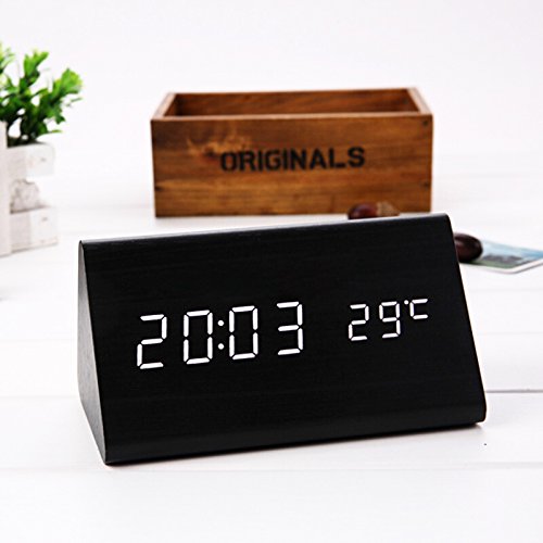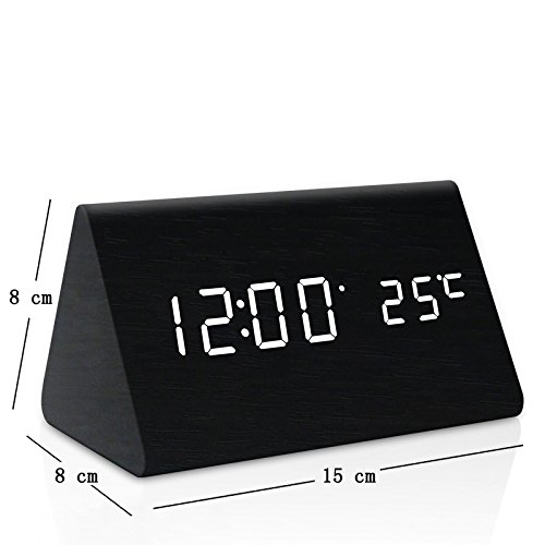 Specification: Display mode:Time / Temperature/Date Led Light Color: White Material: Wooden frame with fine grain Dual Power Supply: DC 5V-6V input or AAA battery,Pc USB port is available (Suggest to use USB cable) Time display: 12-hour or 24-hour mode Temp display: °C/°F display of thermometer Alarm: Alarm Clock with "beep" lasting for 1 minute(set three sets of alarm) Dimension: 5.9*3.1*3.1 inches Weight: 9.17 ounces