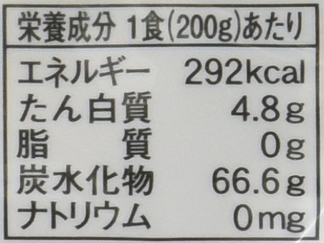 [Per 200 g of nutrition constituent table] 4.8 g of protein, 0 g of lipid, 66.6 g of carbohydrate, 0 mg of sodium