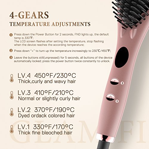Straightening Brush 2.0, GLAMFIELDS Hair Straightener Iron Brush with Double Negative ions Anti-scald Faster Heating MCH Ceramic Technology...