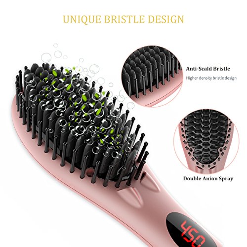 - Advanced MCH technology: Heat up quickly (reach setting temperature in 30 seconds), energy saving, and great endurance. With wide and dense brush tooth, this hair brush straightener can straighten your hair quickly.