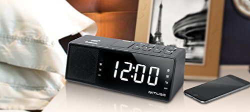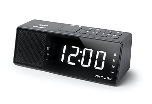 Muse M-172 BT Uhrenradio mit Bluetooth, USB-Anschluss und Ladefunktion (Bluetooth, NFC, USB, AUX-In, PLL UKW Radio, LED-Display, 20 Senderspeicher, Sleep, Snooze) schwarz
