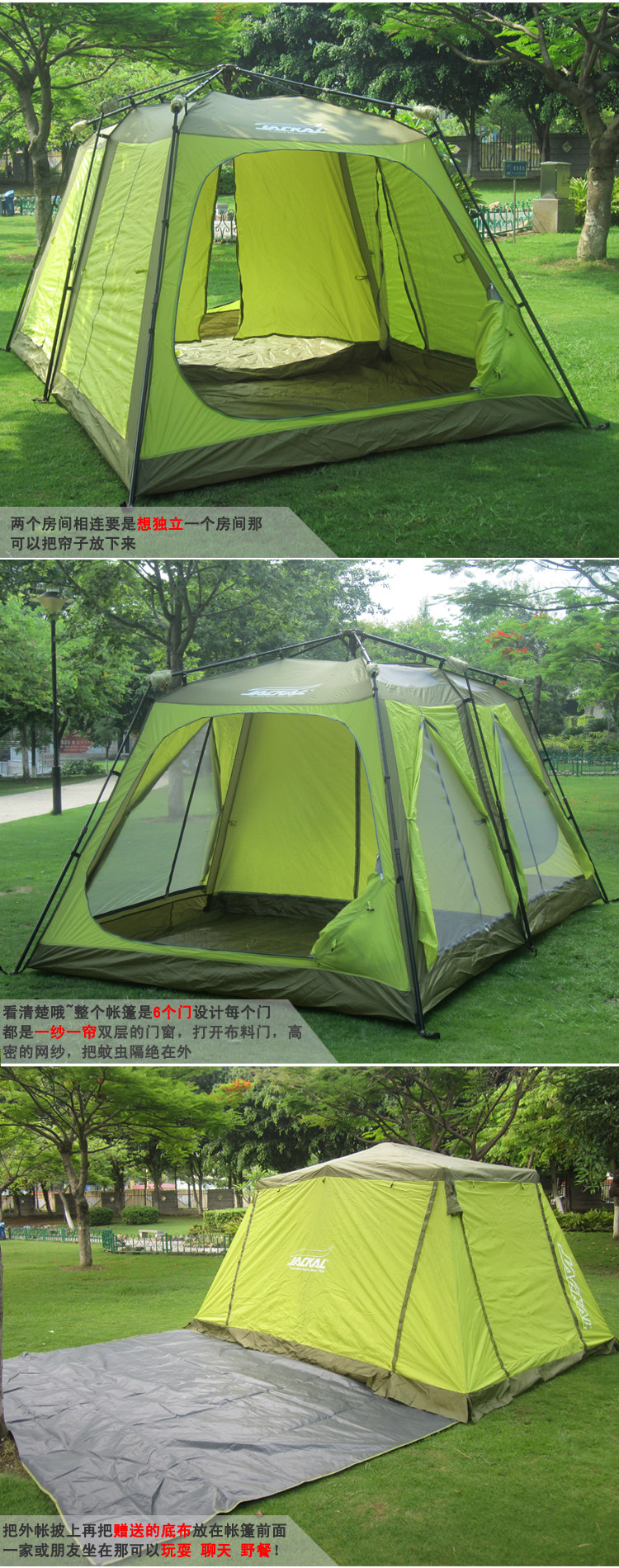 Account set up the situation: Free to build speed to carry out the opening size (L * W * H cm): 365X250X195CM