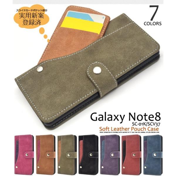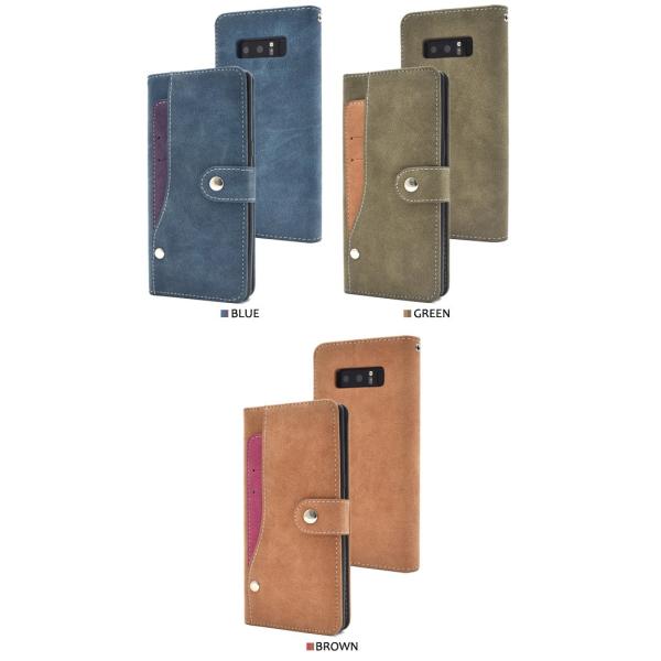 | 対応機種 Galaxy Note8 | Galaxy Note8 SC-01K SCV37 背面に2枚収納スライド式カード入れ、内側に2枚収納カードポケットとサイドポケット搭載 サイズ(約)縦166×横80×厚み20mm カラー ブルー ブラウン レッド ブラック パープル グリーン ピンク |