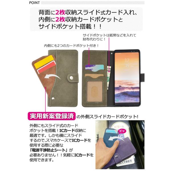| 商品の説明 | 背面に2枚収納スライド式カード入れ、内側に2枚収納カードポケットとサイドポケット搭載した、 スライドカードポケット ソフトレザー手帳型ケース。 背面にもスライド式のカードポケットを搭載!(実用新案登録済) ICカード収納に最適です。 しかも横にスライドするので、スマホケースでICカードを使用する際に必要な 「電波干渉防止シート」が必要ありません!!気軽にICカードを使用できます。 滑らかな手触りソフトレザーデザイン。持つ度に手にしっくりと馴染みます。 背面を折り返すとスタンドとして使用できるので、動画視聴に便利です。 落下防止に便利なストラップホール付きです。 横開きタイプなので、手帳のように使うことができます。 しっかりと固定できるスナップボタン式を採用!マグネットタイプではないので クレジットカードなどの磁気カードも収納できます。 ※スマートフォンは付属しません。 ※ライセンス商品ではありません。 |