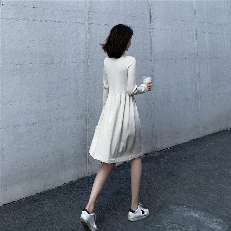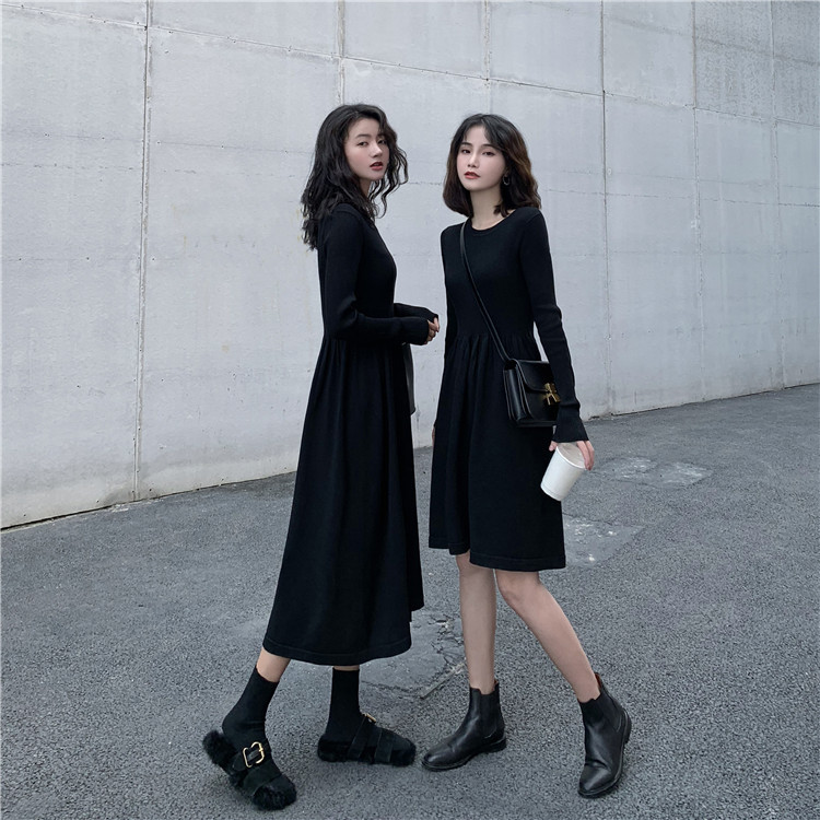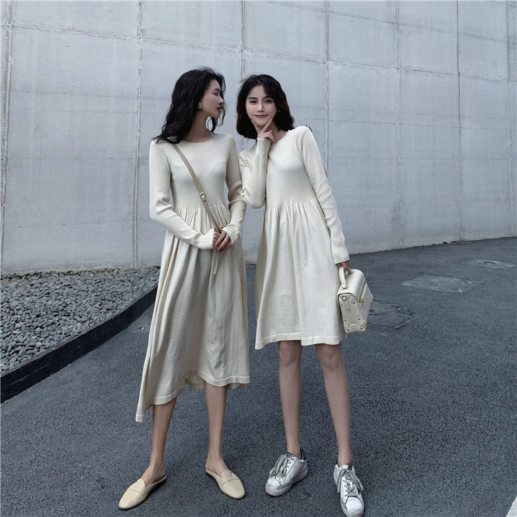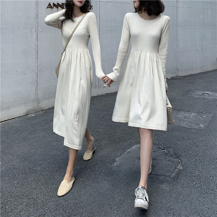 ★ニットワンピース レディース クールネック 長袖 ロングワンピース 春秋 膝丈 マキシ丈ワンピース 上品 オシャレ ファッション 19010904★