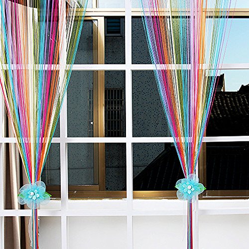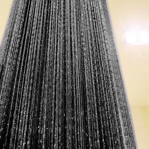 ---String curtain is 100% polyester and with glistering silver ribbon.