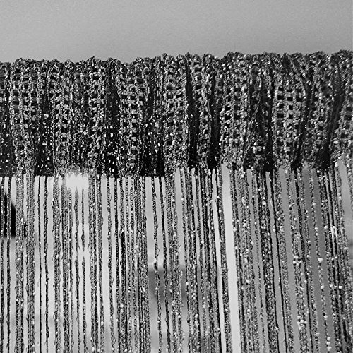 Topix 37.4x76.7 Inch Rare Flat Silver Ribbon Door String Curtain Thread Fringe Window Panel Room Divider Cute Strip Tassel Party Events.
