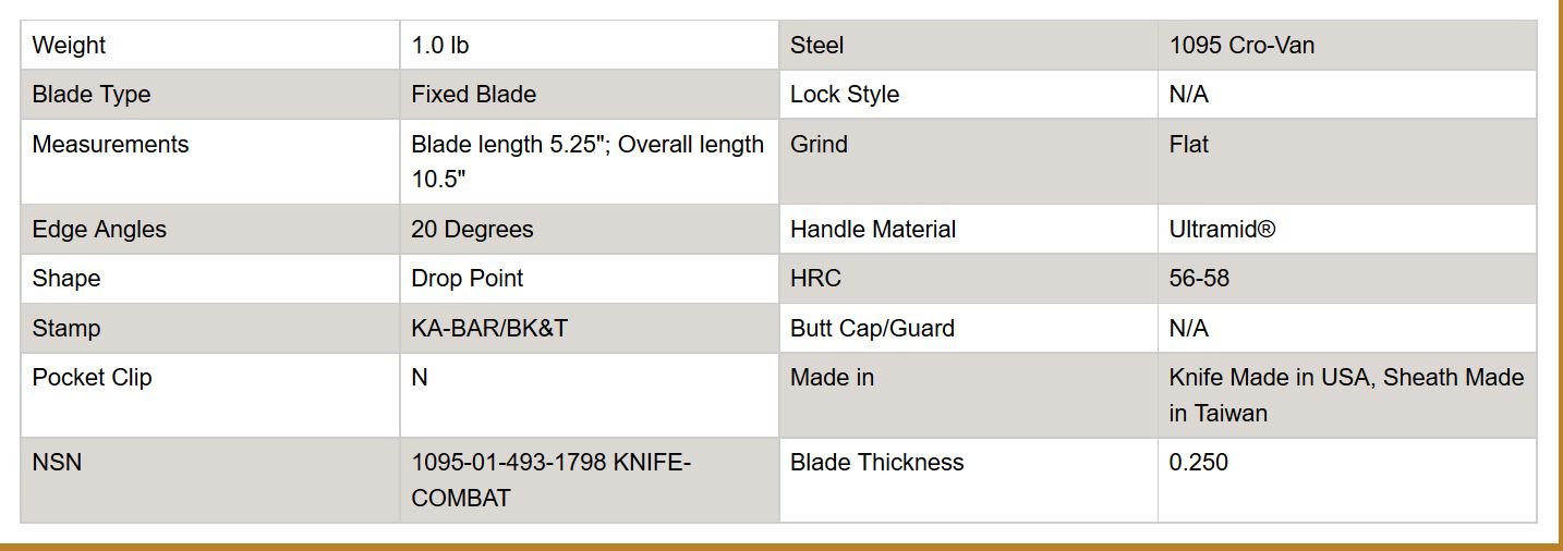 KA - BAR Outdoor knife BK 2 Becker