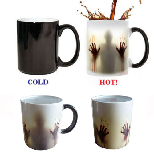 热激活:黑色马克杯会变成白色,当在超过70°C / 158°F5的热水中倾倒时,僵尸会神奇地出现。 它可以跟踪你的咖啡或茶的温度