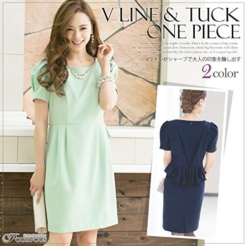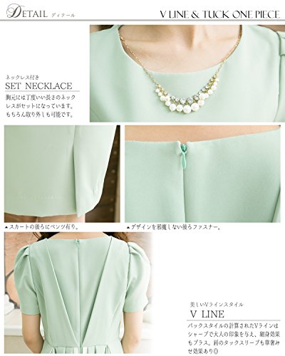 -. Feature : 【カラー】ネイビー,ミント(透け感無し) 【素材】レーヨン 75% ポリウレタン 25% 【裏地】あり / 【サイズ】S/M/L/XL 【伸縮性】無し 【ファスナー】あり(背面) 【付属品】ネックレス / 【商品特徴】背中のVラインがシャープで大人の印象。Vラインから繋がるシフォン生地のレイヤードリボンで大人っぽさの中にかわいらしさをプラス。