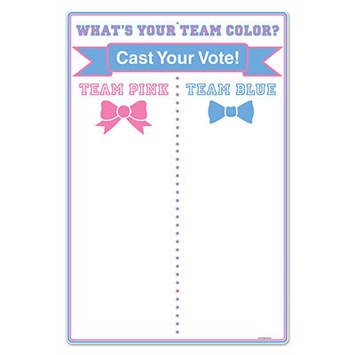 Studio : The Beistle Company Publisher : The Beistle Company Binding : Kitchen Product Description Team Voting Tally Board. This sign is made of board stock and printed on 1 side. It measures 211/4 Inch tall by 131/2 Inch wide. Use the voting tally board at a baby shower where the gender of the baby is unknown. Guests can vote on whether they think there will be a boy or a girl. 0