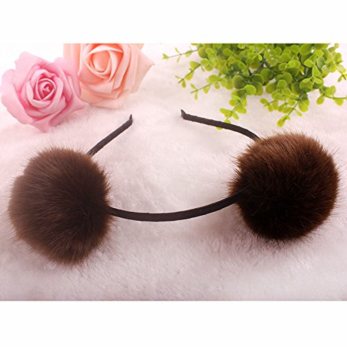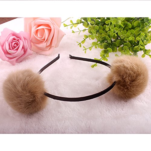 Headband Bear Ears Fluffy Furry Soft Ball Cute Fashion Hoop Hairband Halloween Christmas Party Birthday Headwear Cosplay Costume for Girls Boys...