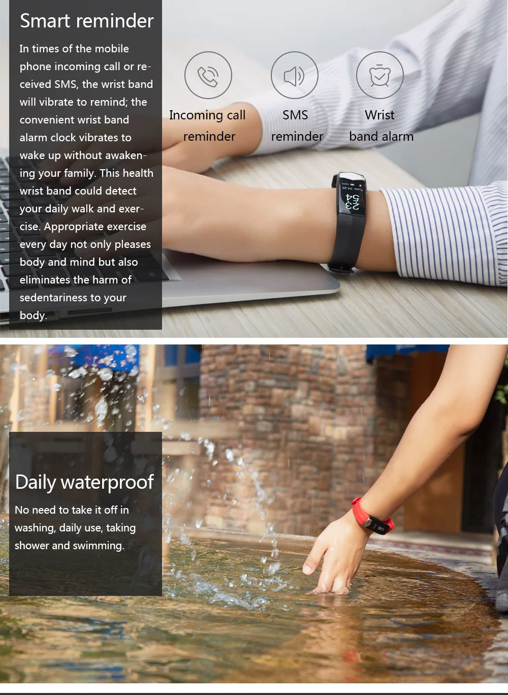 Function:Chronograph,Passometer,Week,Message Reminder,Sleep Tracker,Remote Control,Heart Rate Tracker,Alarm Clock,Blood Pressure,Call Reminder,Fitness Tracker,Push Message