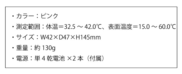 ●測定範囲:体温=32.5~42.0℃、表面温度=15.0~60.0℃